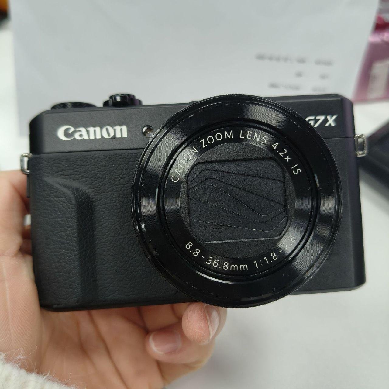 Canon PowerShot G7x Mark II 20.1MP Digital Camera 4.2x Optic Zoom -95% New Β  β€’ 20.1MP 1 CMOS Sensor β€’ Canon DIGIC 7 Image Processor β€’ f/1.82.8 Bright Lens β€’ 4.2x Optical Zoom β€’ Full HD 1080p Video Recording β€’ 3.0 Tilting Touchscreen LCD β€’ Built-in Wi-Fi & NFC β€’ Compact, lightweight design Β  Β  Package contents: 1x Camera 1x Battery 1x Charger 1x Memory card